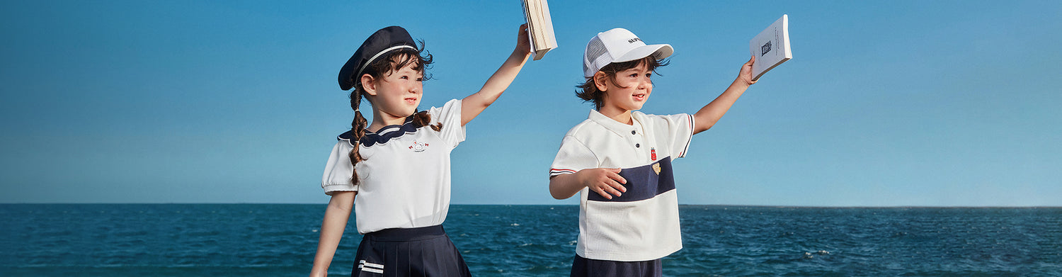 2.款:寬鬆落肩版型.舒適好穿。精緻的航海圖案章仔和字母印花組合.好看又趣味。